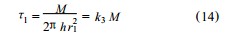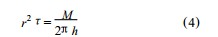 式中 , M 為各流層剪切力矩 , h 為內筒在流體中的高度 ,τ為各流層中的切應力.各流層剪切力矩 M 相等 ,但切應力τ卻不相等 ,它是半徑 r 的函數. 內筒表面上的切應力